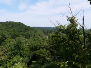 We intended to set up a base camp Friday evening at one of the sites along a trail atop the bluff and do day hikes from there. We changed our mind once we started up the bluff and realized what we would be up against going up and down that bluff multiple times over the weekend, carrying packs and water, in sweltering heat and humidity, with clouds of bugs accompanying us.