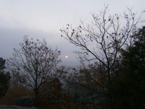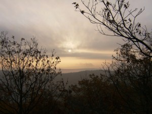 The next morning there was a lot of fog between the hills, almost blocking the sun:
