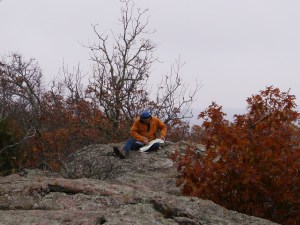 Here’s Fearless Leader looking at maps on what is probably his most favorite rock in Missouri…