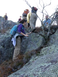 After breakfast and a crash course in map reading and navigation, we headed off for a day hike where there are no trails – down the steep side of the mountain…