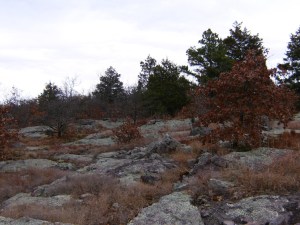 The St. Francois Mountains are apparently one of the oldest exposed geological formations in North America – almost 4 times older than the Appalachians. Much of the rock we saw – including house-size boulders – was granite instead of the usual dolomite or limestone. It’s thought that this area would have been an island in the ancient sea. The glades featured oak trees stunted by the harsh conditions.