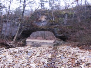 I headed north to the Clifty Creek Conservation Area but the rain caught-up with me anyway just as I was pulling into the parking lot. The trail here is a very scenic 2.5 mile loop featuring a natural bridge and some nice bluffs above the creek.