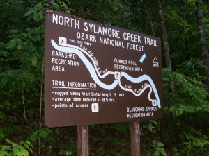 Besides being the western end of the North Sylamore Creek Trail, the Cripple Turkey trail head is also the intersection with the Sylamore section of the Ozark Highlands Trail.