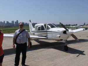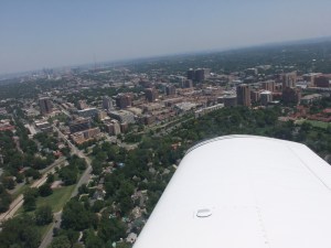 I went flying today with others from the Adventure Club in a rented Piper Arrow. It was my first time in a small plane since I was about 12. We took off from the Charles Wheeler airport downtown and headed along the west side of downtown, turned along the south side, then did a couple circles around the Plaza.