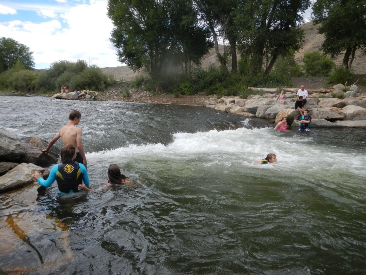 We did a full-day guided trip through the lower Brown’s Canyon area, putting in at Hecla Junction, stopping for lunch at Big Bend, and taking out in downtown Salida. Nobody tipped over though I came real close a couple times. In “Slidell’s Suckhole” my duckie got turned backwards, wedged in some rocks, and submerged under a couple feet of water. I was a bit concerned for a couple seconds until I saw the situation was stable and I wasn’t going further under water. One of the guides helped me get out of the duckie and onto the shore, pulled the duckie out and put it back in downstream.