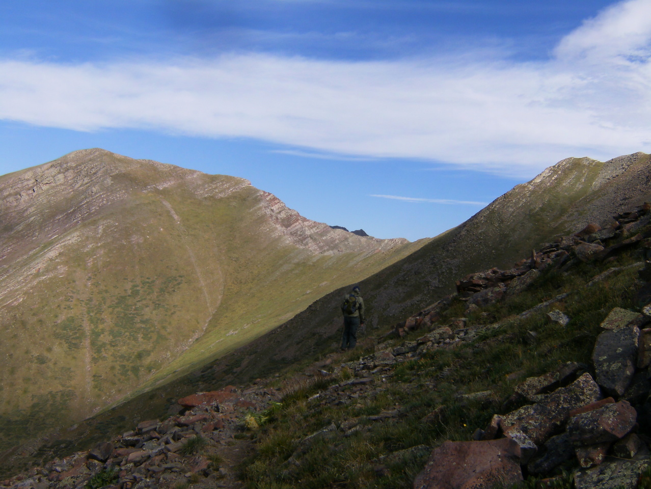 We’ve crossed the saddle below Comanche Peak and gotten our first look at the San Luis Valley to the west with the San Juan mountains in the distance