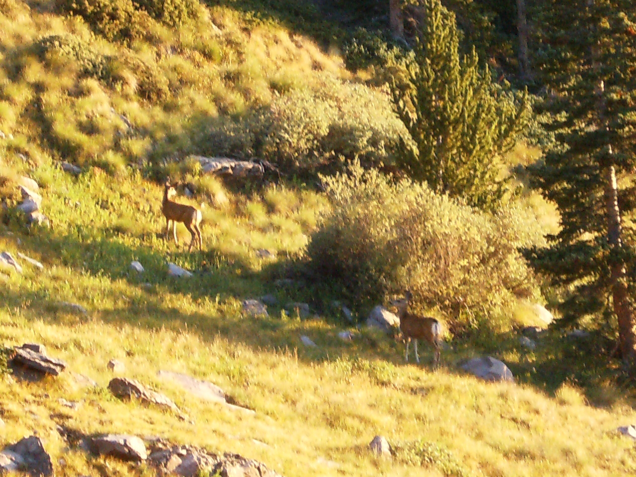 Friday morning we packed and drove to the Comanche-Venable trail head and began our trek to Comanche Lake about 5.5 miles in and 2400′ feet up. The trail soon enters an area that is almost all small aspens but then you begin a long series of switchbacks through tall pine/fir. It has a primeval look and feel. The trees thin after that, and boulder fields become more common.