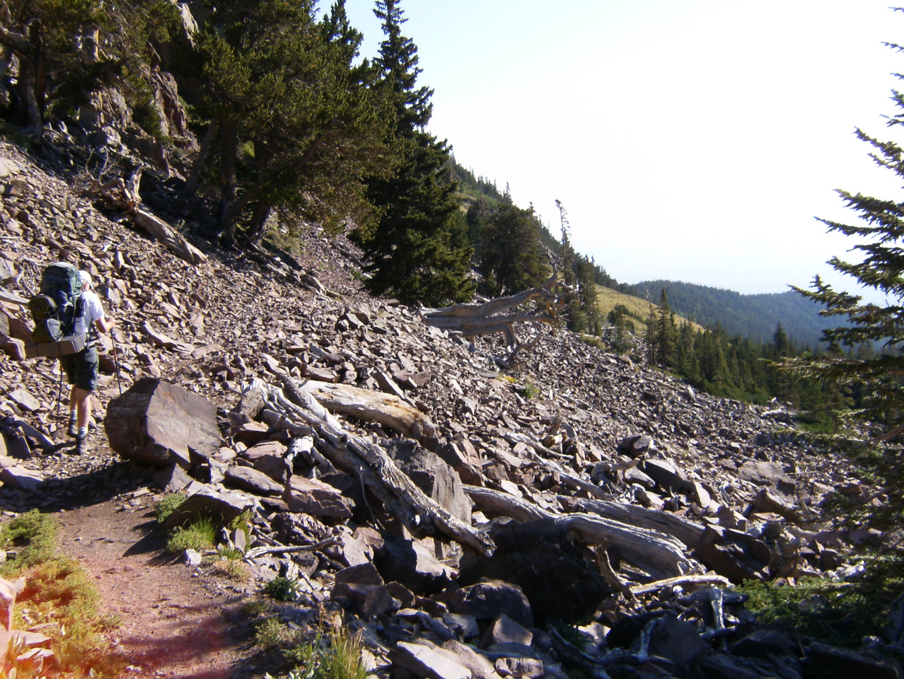 We went down to the lake to get water but shortly after returning, the wind came up and it started raining and hailing off and on for several hours. The pine trees grew in these interesting clusters and we found pretty effective shelter in the midst of such a cluster. Temperatures overnight fell into the low 40’s so the fleece jacket, cap and gloves were all put to use.