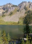People were also scarce, though nobody minded that.  On day 1 we met a couple day-hikers at the trail head and again at the second waterfall, then later at Johnson Lake a couple backpackers passed our camp.  On day 3 at Oreamnos we saw a couple people with horses and maybe a couple others that stopped for water.