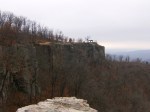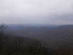 Saturday morning we headed north a short distance along the creek, passing 3 more camp sites, before we started the 1400′ climb.  At the point where the trail tops out there is a spur leading to the mesa atop White Rock Mountain where the 2.2 mile Rim Loop trail rewarded us with some pretty great views, despite the cloud cover.  The CCC did a lot of building here in the ’30s – cabins, campgrounds, picnic areas, shelters, a lodge, etc.  They even built several drinking fountains along the trail, though they no longer function.  This place is probably very crowded during the fall color season.  Continuing east it was all downhill to Salt Fork Creek and then south about 2.5 miles to another established camp site for the night.  Most of the east loop is well above and out-of-sight of the creek but this camp is in a drainage near creek level, though still at least 1/4 mile away.