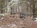 At Bliss Spring, the big trees down in the camp site at the old homestead are still there and still in the way. Getting a fire started required a bit of persistence but was a huge help in getting socks and gloves dried and even our boots too, to some extent.