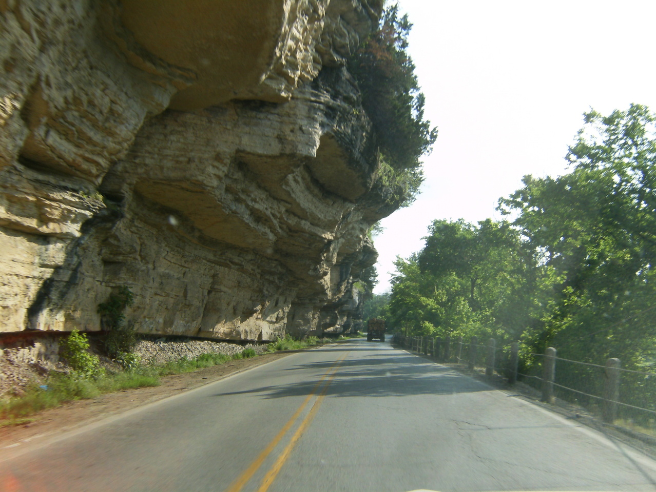 Along MO-59 near Noel you see overhanging bluffs like this. Watch for falling rock, indeed!