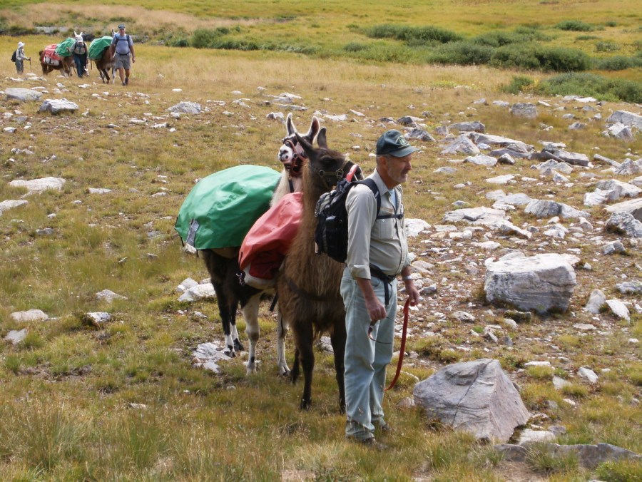 A Forest Service crew and their pack llamas heading for Lake Gilpin.