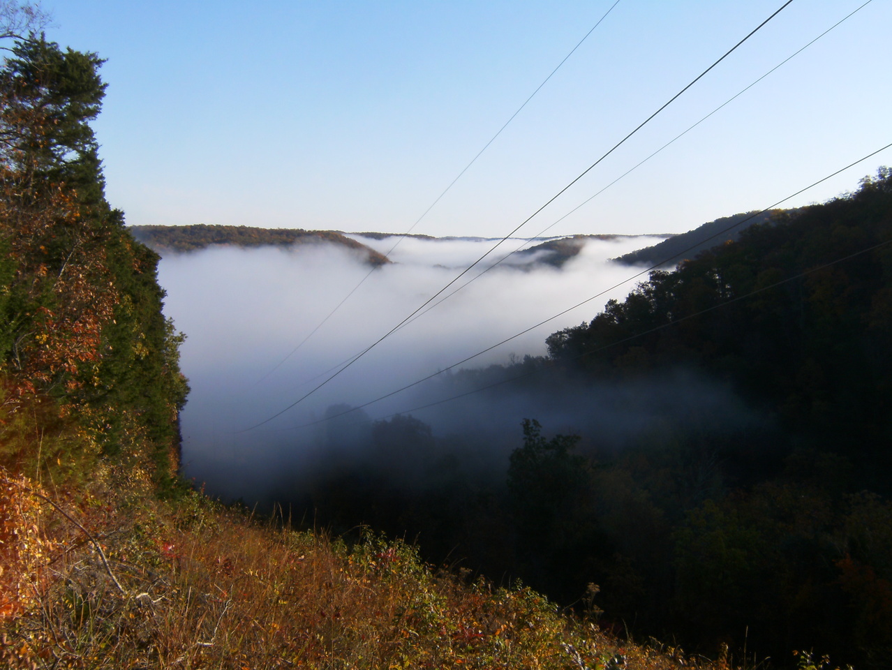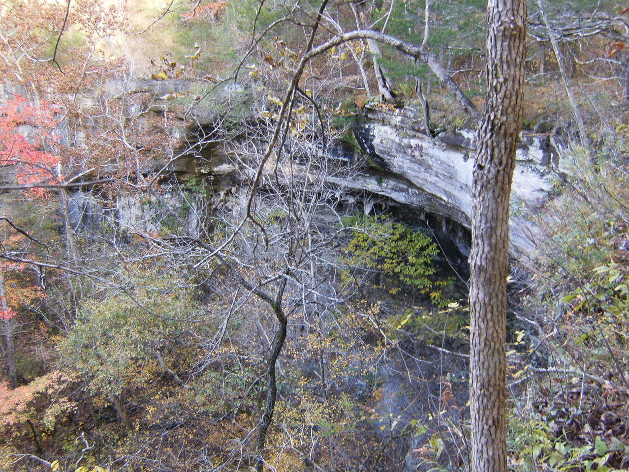 I left Sunday morning (Nov 3) but took the long way home with a trip to Buffalo Point to hike the Indian Rockhouse trail. The Rockhouse is a very large overhang where native inhabitants lived for some time, similar to Cobb Cave in Lost Valley State Park. None of my pictures were able to capture it properly so you better see it for yourself.