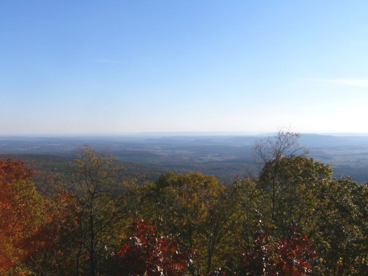 This is looking kinda southwestish, towards Russellville, Lake Dardanelle, and probably the nuclear power plant: