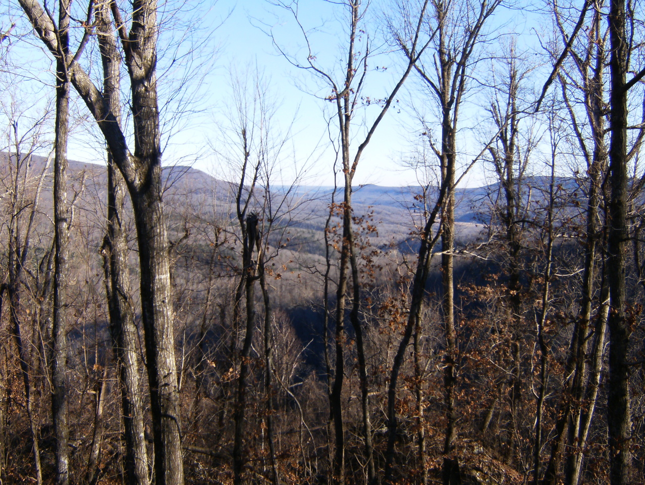 This part of trail starts off headed down hill along a creek and then turns east around the end of the hill through a large rock garden. Here you can catch your first glimpse of the destination – the Richland Valley with the Buffalo River somewhere beyond.