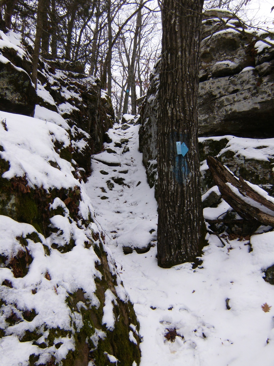 The most scenic area is a long narrow ridge less than 3 miles in. It’s surrounded by a small bluff and a boulder field. The western side has many large rocks broken from the bluff and sliding down the hill, through which the trail winds.