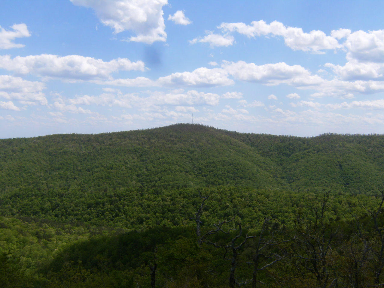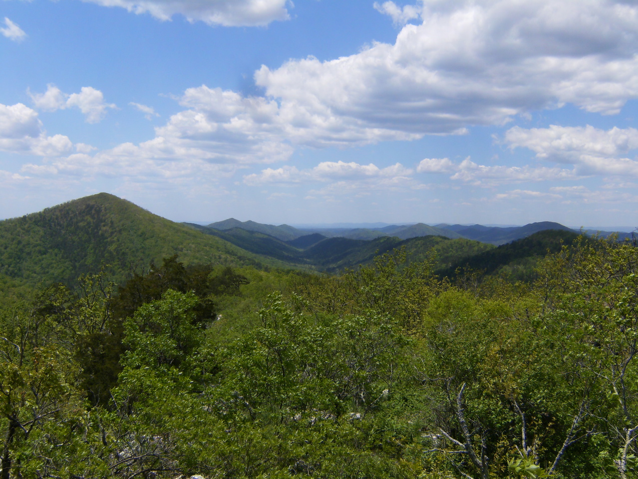 Once you finally make it up to the ridge of Buckeye Mountain and turn east the climb becomes more gradual. Along the way are lots of wildflowers, stunted oaks, nice views, and interesting rock formations but virtually no level ground. Tent campers are pretty much out of luck up here. The trail works its way up the ridge, switching regularly between the north and south sides. The gooseberry and briar will really tear you up if you’re wearing shorts.