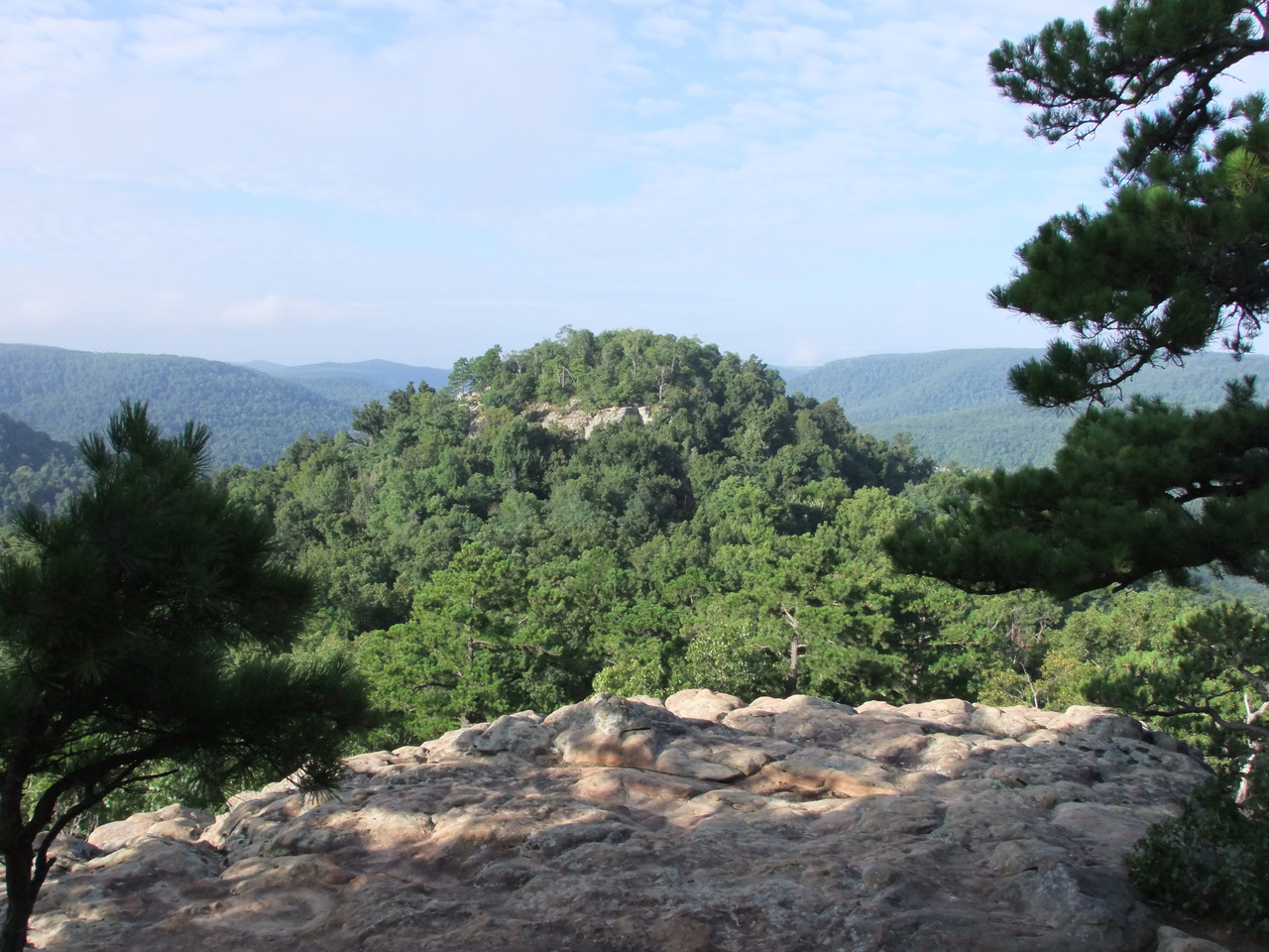 No, not a Walmart story! Sam’s Throne is basically a rocky knob on the east side of the Big Creek valley. It has sheer bluffs on all sides that are probably 40-60′ high and has some great views in all directions. It’s south of Mt Judea (pronounced “judy”), Ark on the west side of AR 123. The short story behind the name is that a while back some guy named Sam would climb up there to yell biblical stuff at his lucky neighbors in the valley below.