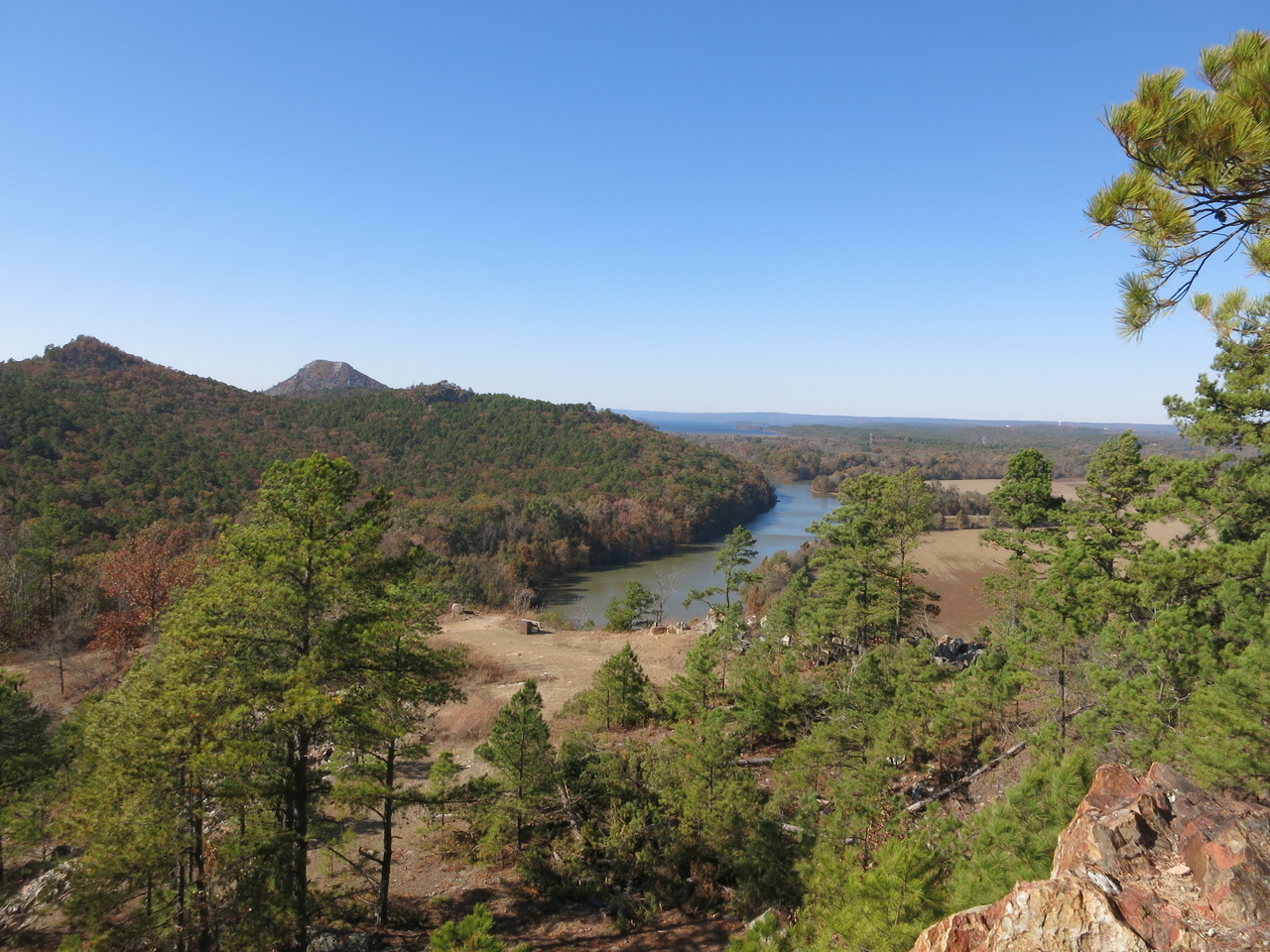 Maumelle River, downstream from the lake & dam. That’s Pinnacle Mountain about 1/3 from the left edge.