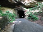 Nada Tunnel is a 900′ long 12’x12′ tunnel carved through a ridge in 1910 to provide access to the gorge by a logging railroad. It’s now used for automobile traffic on KY-77 (one direction at a time) and is rather eerie to drive through. Not only did I feel pretty closed-in, but the walls seemed to eat every photon from the headlights. I wonder what it’s like to drive through at night.