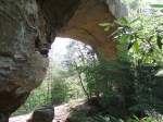 Backcountry camping is allowed in RRGGA (with a free permit) but it looks to me like it would be better to stay at a campground and day-hike the area if you’re not passing through on the Sheltowee Trace. This place is being loved to death, with many traces left. Despite signs everywhere saying camp sites must be 300′ from the trail, for instance, the short Gray’s Arch loop has more than 2 dozen worn-out sites right next to the trail. Fortunately, those are now roped-off and designated as restoration areas. Much of the terrain is so steep that it seems unlikely that you’ll just wander out in the woods and find a decent and legal camp site where you want to stop.