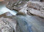 We made camp #2 early at Lick Creek and then hiked upstream a bit to see Slot Rock, where the water flows down a narrow chute into a large pool – a popular swimming hole in the summer. Then we hiked further upstream and turned up a tributary to see if we could find Sunset and Discovery falls. With heights of 70′ and 43′ respectively, they were very enticing. It was a lot of work to get to it but we did find Sunset Falls just as we ran out of time and needed to turn back. There was surprisingly little water flowing over it so we were a bit disappointed. On the other side of the “canyon” was a waterfall that I thought was Discovery but it turned out to be its smaller sibling, with Discovery hiding further up in the bluff and even harder to get to.