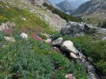 Day 2: New Fork Park to Lozier Lakes. More climbing – through a pass at about 10700′ before descending a little to Upper Lozier Lake. After moving above the tree line we marvel at the abundant wild flowers.