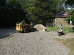 A US Forest Service project may have put an end to that. A USFS employee spent a day spreading a layer of large crushed rock for about 100 yards through the problem area with the remainder spread across the parking lot. That big pothole out by the road is gone.