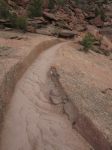 The White House is the remains of a 1000-year-old dwelling and apparently got that name due to some old white plaster on a wall. The trail is a 3 mile round trip with 600′ elevation change each way. Much of the upper trail has been carved from the sandstone (relatively recently, I assume) and features a couple tunnels. After crossing the bridge that is on the verge of washing away you can look back to see The World’s Most Pointless Warning Sign. The site is a couple hundred yards downstream.
