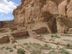 Chetro Ketl is the second largest of the Great Houses and was built between 1000-1100 CE. It lies .25 miles east of Pueblo Bonito and is also visible from the Pueblo Alto Trail on the bluff above. The Petroglyph Trail runs along the base of the bluff and connects the two sites.