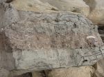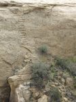 The 5-mile Pueblo Alto Trail passes behind the ruins of Kin Kletso (about .5 miles NW of Pueblo Bonito) and climbs through a big crack to the top of the bluff – the same route used by the ancients during their travels. The guidebook describes many points of interest along the way but I’ll show only a few here. Pecked Basins were carved on some ledges and some contained pieces of turquoise so they may have been used for offerings. The trail passes the ruins of New Alto and Pueblo Alto with a bit of the Great North Road in between. The road runs 40 miles straight north to a canyon just west of Angel Peak. Also visible is part of a stairway carved into the bluff face for travel between the canyon and the plain above. There’s plenty of interesting geology on display too like the “shrimp burrows” where ancient crustaceans dug tunnels through the sand which were later filled with iron-rich deposits.