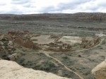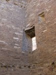 Pueblo Bonito is the largest of the Great Houses and the icon for this whole area. It was built in stages from about 830 to 1150 CE and you can plainly see how the construction techniques and style evolved over time. It is thought to have been 4 or 5 stories tall but the current ground level is just above the second floor. Much of the building had apparently been covered by sand so extensive excavation has been done in recent years.