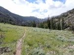 We stopped for lunch, then continued north on the Glacier Trail back down the switchbacks to the junction with the Torrey Creek trail and camped at the north end of the big meadow.
