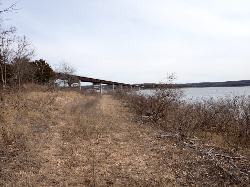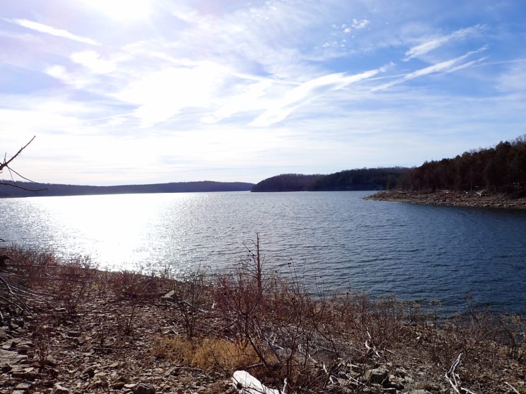 I’ve spent about 6 days over the last 2 weeks enjoying some mild weather while hiking a big part of the Ozarks Keystone Trail that runs along Norfork Lake in north-central Arkansas. A primary goal was to gather data for a new map but I was also interested in seeing some new territory. There are abundant lake views but sometimes the room available for the trail between the Corps boundary and the lake is quite small so you also get views of homes adjacent to the boundary. I imagine there was a lot of pressure to keep the boundary as “tight” as possible to maximize the value of adjacent real estate.