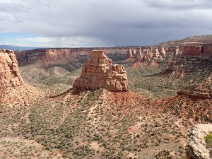 RC & I spent about 2 days around Colorado National Monument (CNM) and McInnis Canyons National Conservation Area, just south of Grand Junction, Fruita, and the Colorado River. It was my first time being that far west in Colorado so there was a lot of new scenery for me. It’s a semi-arid canyon lands ecosystem so much different than being up in the Rockies. The area is criss-crossed by trails but we would be mostly sightseeing on this visit, with only a couple short hikes. Still, we barely scratched the surface of all there is to see. The area is a wonderland for those interested in geology or paleontology.