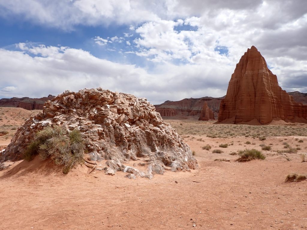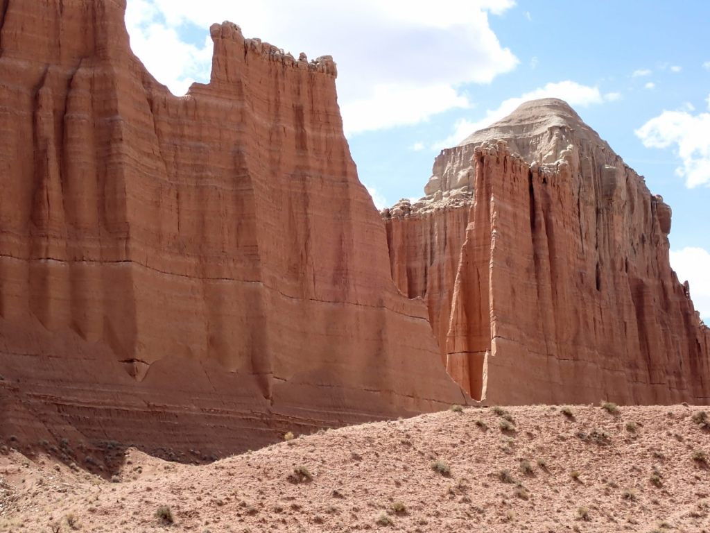 I spent some time at 3 of Utah’s “Big Five” with TC & RC, starting with 3+ days (April 6-9) at Capital Reef NP. We saw only a small part of the whole thing yet it was a pretty representative sample. There was no backpacking or tent camping this time – we enjoyed the relative luxury of a cabin at Thousand Lakes RV Park in Torrey instead, complete with full bathroom and kitchen.