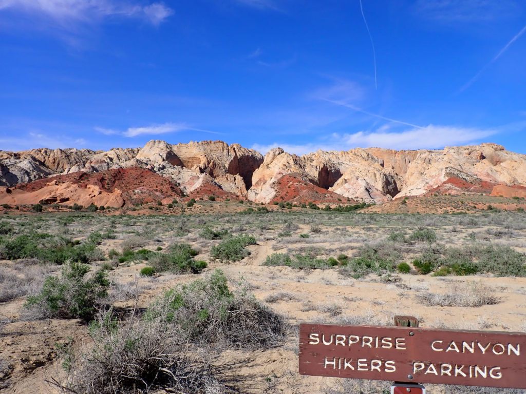 Surprise Canyon was my first time in anything close to a slot canyon and it was a good introduction with minimal effort needed but we soon arrived at a big rock in the path. There was a too-narrow slot around it. We figured we could probably climb over it but coming back down could be pretty dicey so that became our turn-around point. Upon reading a description of the hike later, there is an even bigger obstacle just beyond that rock so we didn’t really miss much.