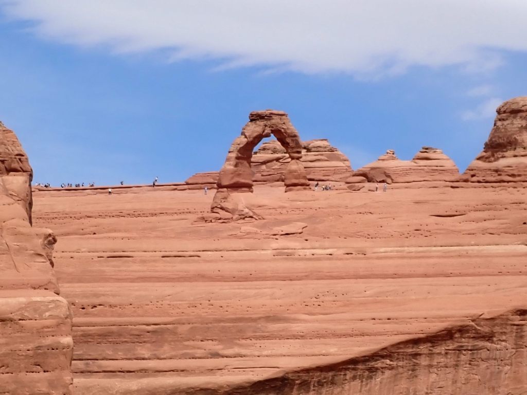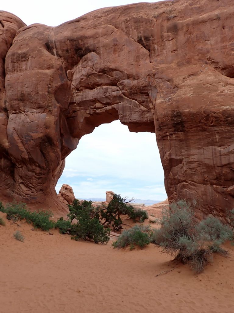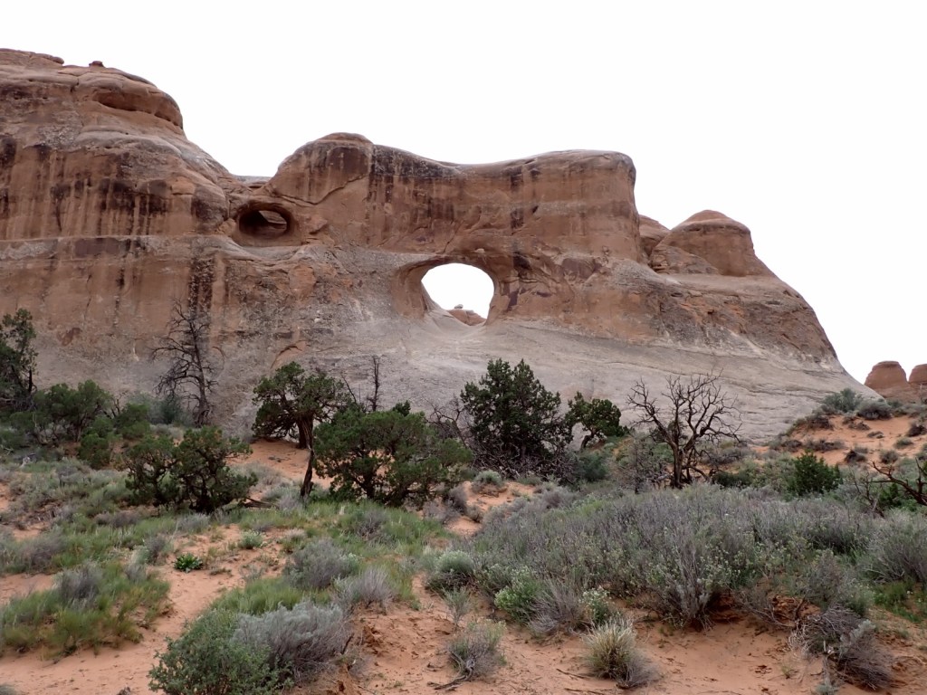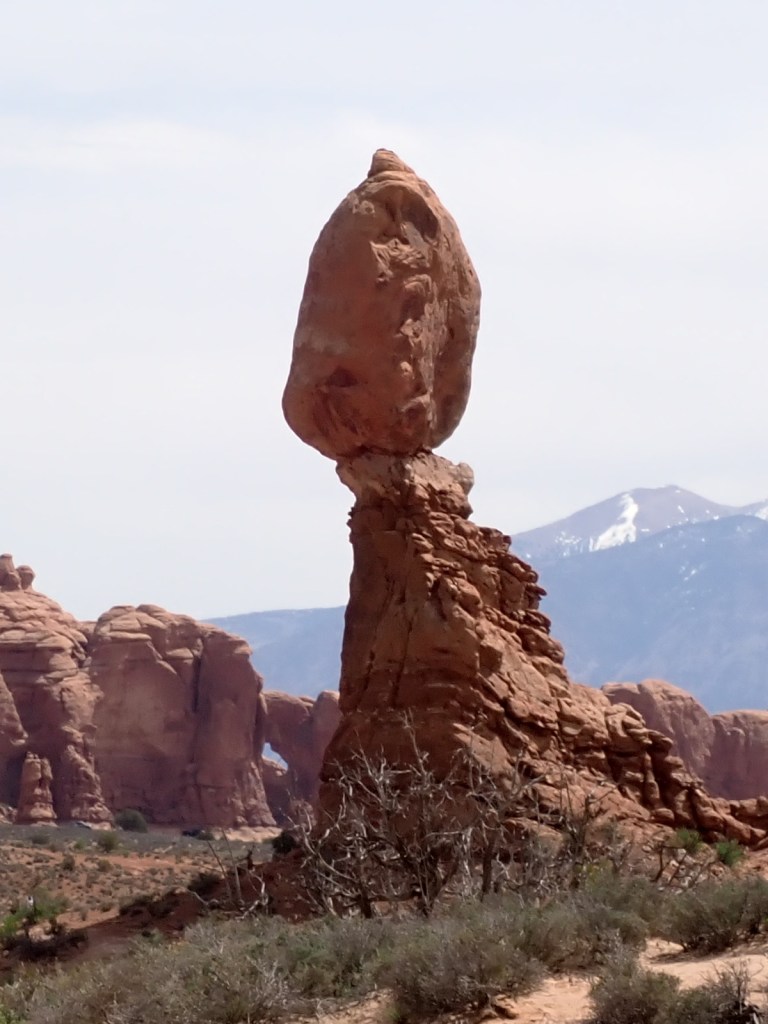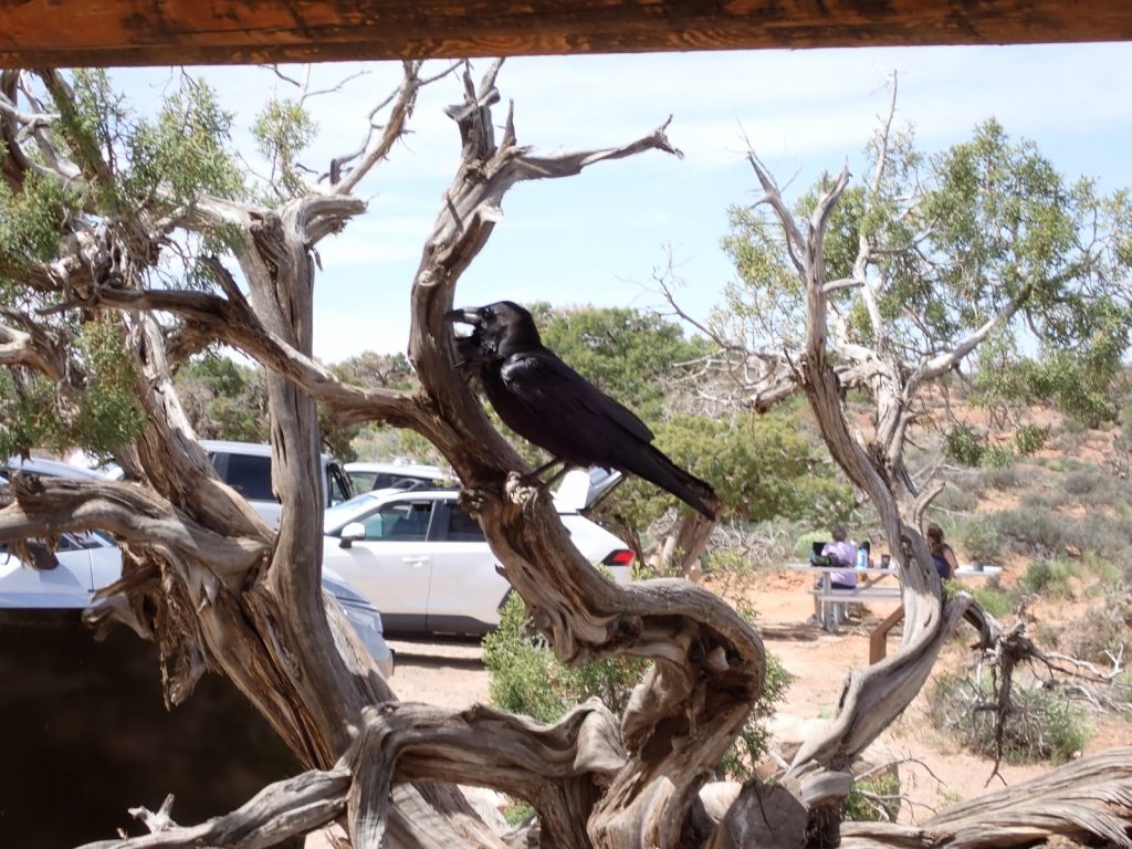 We arrived at Arches a bit before noon and only had to wait 20-30 minutes to get in, which was rather surprising. We headed to a picnic area near Balanced Rock – a very popular attraction – to find a place to eat lunch and found several unoccupied picnic tables – another surprise. Each table came with a raven that stood by ready to snatch anything that fell on the ground or was unattended for a few seconds. They are very well-adapted for tourists.