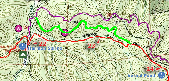 My impression (in light green) of the current (Nov ’12) routing of the trail.