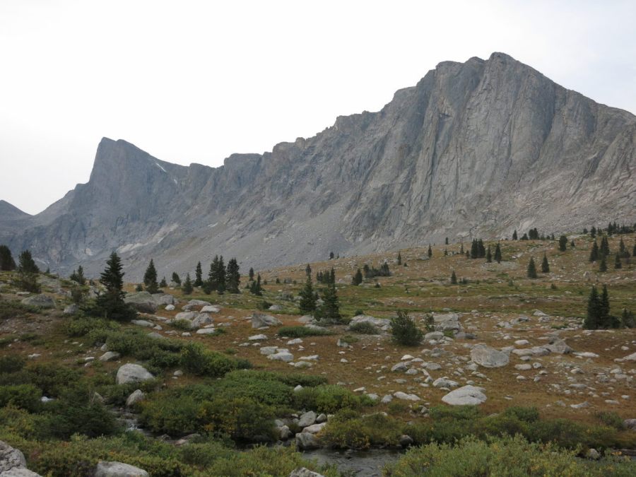 Less-hazy Pronghorn and Dragon Head peaks.